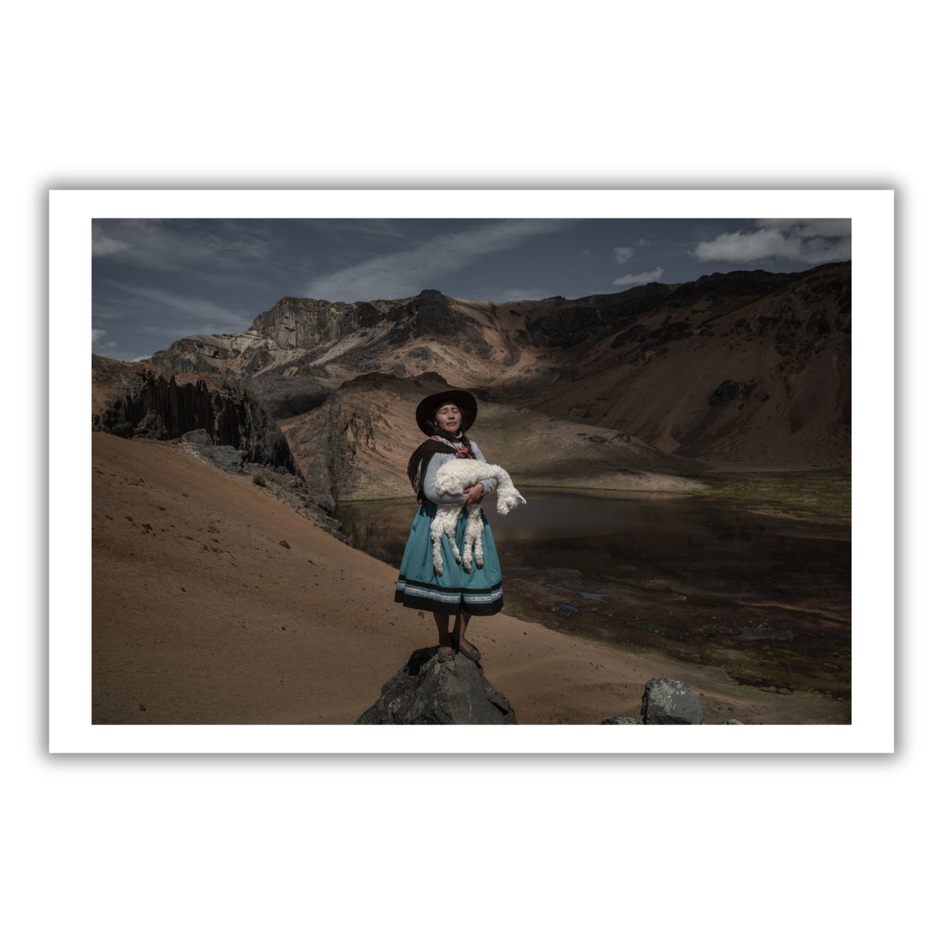 Alina Surquislla Gomez, a third-generation alpaquera (alpaca-farmer), cradles a baby alpaca on the way to her family’s summer pastures, in Oropesa, Peru, on 3 May 2021. The climate crisis is forcing herders, many of whom are women, to search for new pastures, often in difficult terrain.